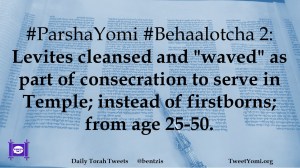 #ParshaYomi #Behaalotcha 2: Levites cleansed and “waved” as part of consecration to serve in Temple; instead of firstborns; from age 25-50.