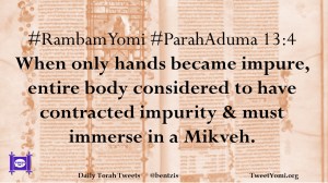 #RambamYomi #ParahAduma 13:4 When only hands became impure, entire body considered to have contracted impurity & must immerse in a Mikveh.