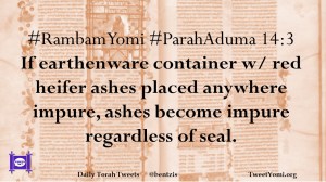 #RambamYomi #ParahAduma 14:3 If earthenware container w/ red heifer ashes placed anywhere impure, ashes become impure regardless of seal.