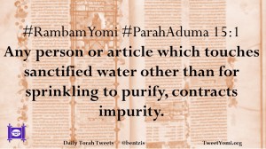 #RambamYomi #ParahAduma 15:1 Any person or article which touches sanctified water other than for sprinkling to purify, contracts impurity.