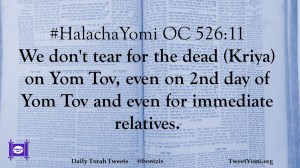 #HalachaYomi OC 526:11 We don’t tear for the dead (Kriya) on Yom Tov, even on 2nd day of Yom Tov and even for immediate relatives.