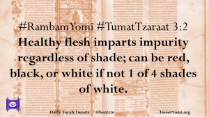 #RambamYomi #TumatTzaraat 3:2 Healthy flesh imparts impurity regardless of shade; can be red, black, or white if not 1 of 4 shades of white.