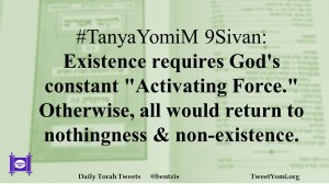 #TanyaYomiM 9Sivan: Existence requires God’s constant “Activating Force.” Otherwise, all would return to nothingness & non-existence.