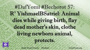 Bechorot, DafYomi #DafYomi #Bechorot 57 Date: June 14, 2019Author: ysspitz #DafYomi #Bechorot 57: R’ YishmaelBSatriel: Animal dies while giving birth, flay dead mother’s skin, clothe living newborn animal, protects. Share this: Share on X (Opens in new window) X Share on Facebook (Opens in new window) Facebook Like Loading... Related