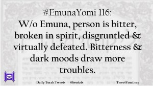 #EmunaYomi 116: W/o Emuna, person is bitter, broken in spirit, disgruntled & virtually defeated. Bitterness & dark moods draw more troubles.