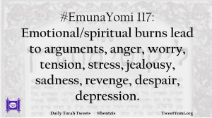 #EmunaYomi 117: Emotional/spiritual burns lead to arguments, anger, worry, tension, stress, jealousy, sadness, revenge, despair, depression.