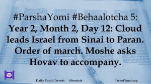 #ParshaYomi #Behaalotcha 5: Year 2, Month 2, Day 12: Cloud leads Israel from Sinai to Paran. Order of march. Moshe asks Hovav to accompany.
