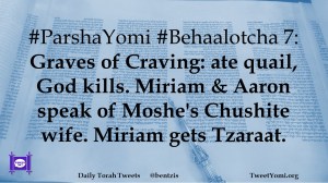 #ParshaYomi #Behaalotcha 7: Graves of Craving: ate quail, God kills. Miriam & Aaron speak of Moshe’s Chushite wife. Miriam gets Tzaraat.