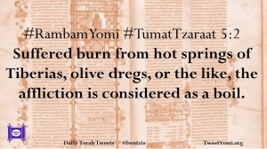 #RambamYomi #TumatTzaraat 5:2 Suffered burn from hot springs of Tiberias, olive dregs, or the like, the affliction is considered as a boil.