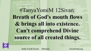 #TanyaYomiM 12Sivan: Breath of God’s mouth flows & brings all into existence. Can’t comprehend Divine source of all created things.