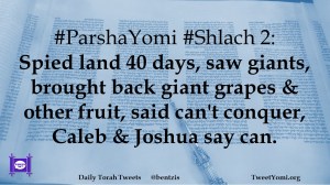 #ParshaYomi #Shlach 2: Spied land 40 days, saw giants, brought back giant grapes & other fruit, said can’t conquer, Caleb & Joshua say can.