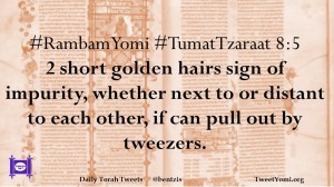 #RambamYomi #TumatTzaraat 8:5 2 short golden hairs sign of impurity, whether next to or distant to each other, if can pull out by tweezers.