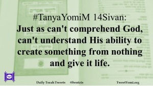 #TanyaYomiM 14Sivan: Just as can’t comprehend God, can’t understand His ability to create something from nothing and give it life.