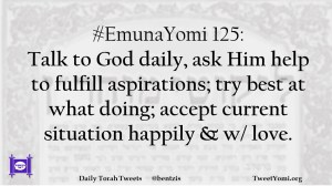 #EmunaYomi 125: Talk to God daily, ask Him help to fulfill aspirations; try best at what doing; accept current situation happily & w/ love.