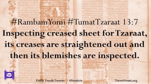 #RambamYomi #TumatTzaraat 13:7 Inspecting creased sheet for Tzaraat, its creases are straightened out and then its blemishes are inspected.