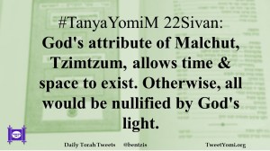 #TanyaYomiM 22Sivan: God’s attribute of Malchut, Tzimtzum, allows time & space to exist. Otherwise, all would be nullified by God’s light.