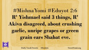 #MishnaYomi #Eduyot 2:6 R’ Yishmael said 3 things, R’ Akiva disagreed, about crushing garlic, unripe grapes or green grain ears Shabat eve.