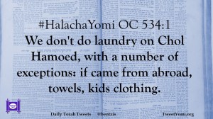 #HalachaYomi OC 534:1 We don’t do laundry on Chol Hamoed, with a number of exceptions: if came from abroad, towels, kids clothing.