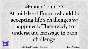#EmunaYomi 135: At mid-level Emuna should be accepting life’s challenges w/ happiness. Then ready to understand message in each challenge.