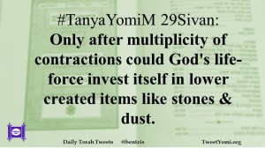 #TanyaYomiM 29Sivan: Only after multiplicity of contractions could God’s life-force invest itself in lower created items like stones & dust.