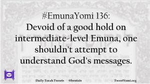 EmunaYomi #EmunaYomi 136 Date: July 4, 2019Author: ysspitz #EmunaYomi 136: Devoid of a good hold on intermediate-level Emuna, one shouldn’t attempt to understand God’s messages. Share this: Share on X (Opens in new window) X Share on Facebook (Opens in new window) Facebook Like Loading... Related
