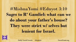 #MishnaYomi #Eduyot 3:10 Sages to R’ Gamliel: what can we do about your father’s house? They were strict w/ selves but lenient for Israel.