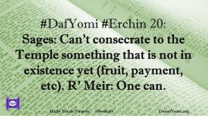 DafYomi, Erchin #DafYomi #Erchin 20 Date: July 5, 2019Author: ysspitz #DafYomi #Erchin 20: Sages: Can’t consecrate to the Temple something that is not in existence yet (fruit, payment, etc). R’ Meir: One can. Share this: Share on X (Opens in new window) X Share on Facebook (Opens in new window) Facebook Like Loading... Related