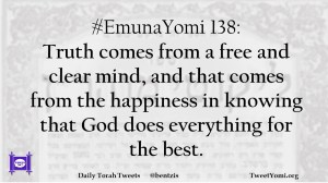 #EmunaYomi 138: Truth comes from a free and clear mind, and that comes from the happiness in knowing that God does everything for the best.