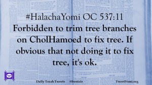 #HalachaYomi OC 537:11 Forbidden to trim tree branches on CholHamoed to fix tree. If obvious that not doing it to fix tree, it’s ok.