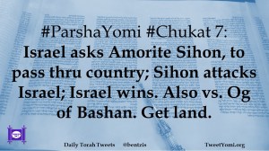 #ParshaYomi #Chukat 7: Israel asks Amorite Sihon, to pass thru country; Sihon attacks Israel; Israel wins. Also vs. Og of Bashan. Get land.