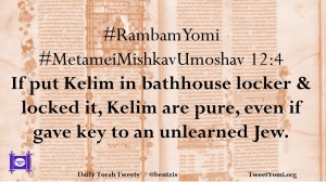 #RambamYomi #MetameiMishkavUmoshav 12:4 If put Kelim in bathhouse locker & locked it, Kelim are pure, even if gave key to an unlearned Jew.
