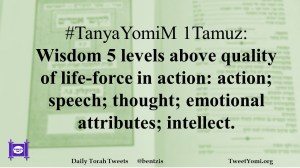 #TanyaYomiM 1Tamuz: Wisdom 5 levels above quality of life-force in action: action; speech; thought; emotional attributes; intellect.