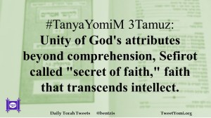 #TanyaYomiM 3Tamuz: Unity of God’s attributes beyond comprehension, Sefirot called “secret of faith,” faith that transcends intellect.