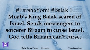 #ParshaYomi #Balak 1: Moab’s King Balak scared of Israel. Sends messengers to sorcerer Bilaam to curse Israel. God tells Bilaam can’t curse.