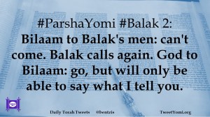 #ParshaYomi #Balak 2: Bilaam to Balak’s men: can’t come. Balak calls again. God to Bilaam: go, but will only be able to say what I tell you.