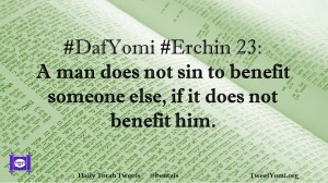 DafYomi, Erchin #DafYomi #Erchin 23 Date: July 9, 2019Author: ysspitz #DafYomi #Erchin 23: A man does not sin to benefit someone else, if it does not benefit him. Share this: Share on X (Opens in new window) X Share on Facebook (Opens in new window) Facebook Like Loading... Related