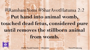 #RambamYomi #SharAvotHatuma 2:2 Put hand into animal womb, touched dead fetus, considered pure until removes the stillborn animal from womb.