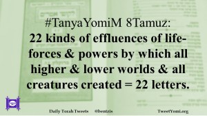 #TanyaYomiM 8Tamuz: 22 kinds of effluences of life-forces & powers by which all higher & lower worlds & all creatures created = 22 letters.