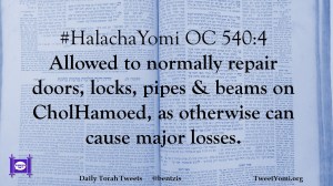 #HalachaYomi OC 540:4 Allowed to normally repair doors, locks, pipes & beams on CholHamoed, as otherwise can cause major losses.
