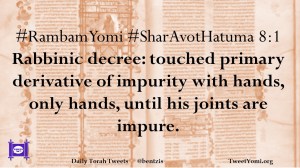#RambamYomi #SharAvotHatuma 8:1 Rabbinic decree: touched primary derivative of impurity with hands, only hands, until his joints are impure.