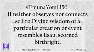 #EmunaYomi 150: If neither observes nor connects self to Divine wisdom of a particular creation or event resembles Esau, scorned birthright.