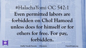 #HalachaYomi OC 542:1 Even permitted labors are forbidden on Chol Hamoed unless does for himself or for others for free. For pay, forbidden.