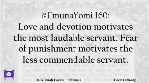 #EmunaYomi 160: Love and devotion motivates the most laudable servant. Fear of punishment motivates the less commendable servant.