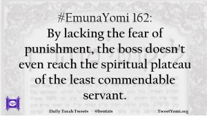 #EmunaYomi 162: By lacking the fear of punishment, the boss doesn’t even reach the spiritual plateau of the least commendable servant.