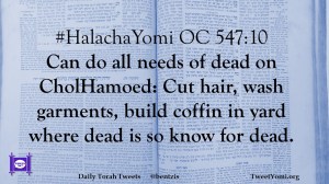 #HalachaYomi OC 547:10 Can do all needs of dead on CholHamoed: Cut hair, wash garments, build coffin in yard where dead is so know for dead.