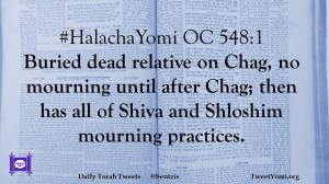 #HalachaYomi OC 548:1 Buried dead relative on Chag, no mourning until after Chag; then has all of Shiva and Shloshim mourning practices.