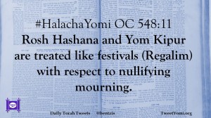 HalachaYomi #HalachaYomi OC 548:11 Date: August 1, 2019Author: ysspitz #HalachaYomi OC 548:11 Rosh Hashana and Yom Kipur are treated like festivals (Regalim) with respect to nullifying mourning. Share this: Share on X (Opens in new window) X Share on Facebook (Opens in new window) Facebook Like Loading... Related