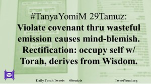 #TanyaYomiM 29Tamuz: Violate covenant thru wasteful emission causes mind-blemish. Rectification: occupy self w/ Torah, derives from Wisdom.