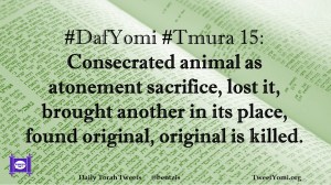 DafYomi, Tmura #DafYomi #Tmura 15 Date: August 3, 2019Author: ysspitz #DafYomi #Tmura 15: Consecrated animal as atonement sacrifice, lost it, brought another in its place, found original, original is killed. Share this: Share on X (Opens in new window) X Share on Facebook (Opens in new window) Facebook Like Loading... Related