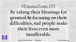 #EmunaYomi 170: By taking their blessings for granted & focusing on their difficulties, sad people make their lives even more insufferable.
